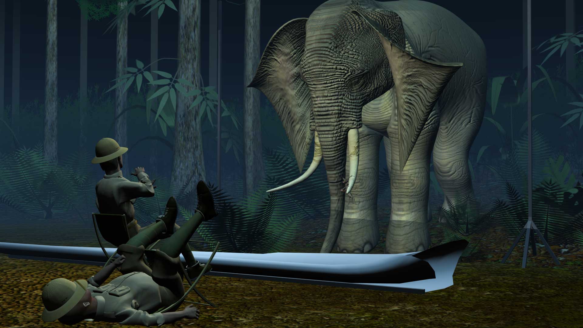 Ollie the Elephant knocks over the movie screen in a panic during Scene 15 from "Wild Cinema."