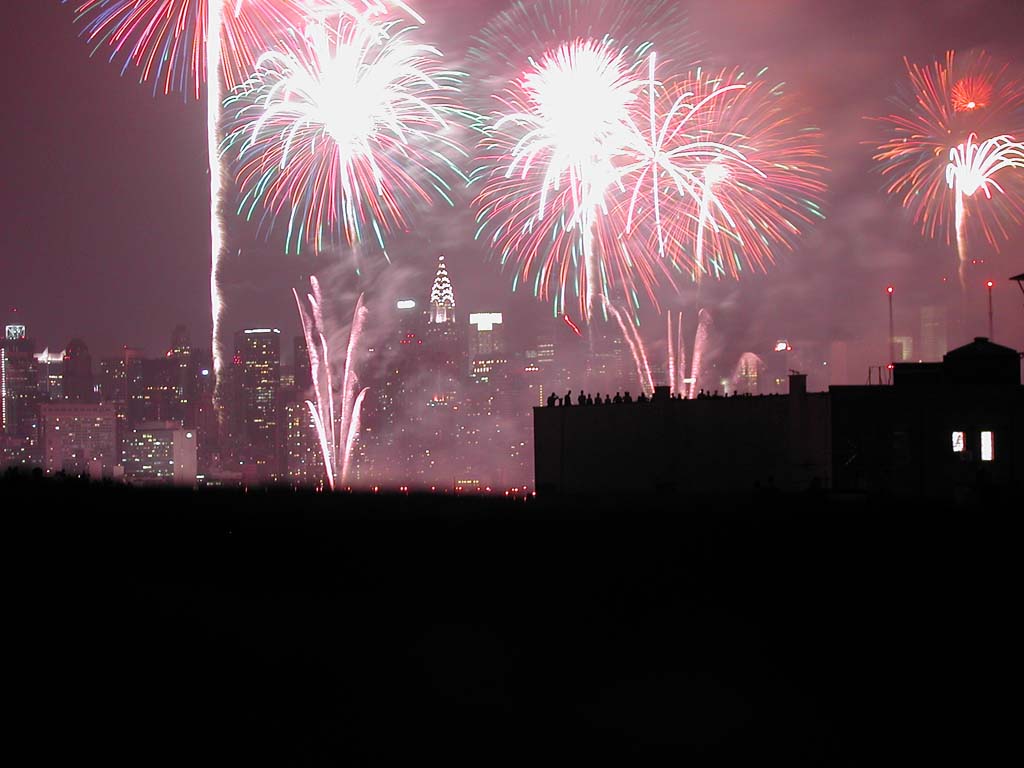 Macy's Independence Day fireworks viewed from my roof in Williamsburg.
